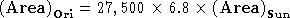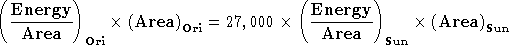 If the two stars had the same radius and surface area, the Sun would radiate 6.8 times as much energy. But Ori has a total energy radiated that is 27,000 times more than that of the Sun. for the Sun is larger than that of Ori by :