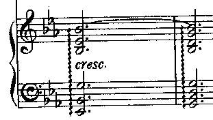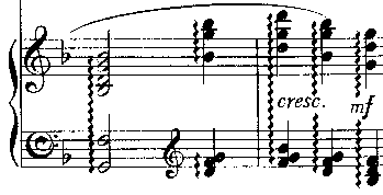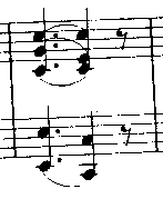 The problems with the notation of piano score in abc apply in pretty much the same way to harpsichord, harp, celesta, and organ music. The notation below require several extensions of the abc clefs, which are detailed in their own WWW page. Please see that page before proceeding.
