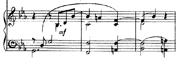 V:1 | [C3c3]- [C2c2] z | V:2 | (G3- E2) z |
