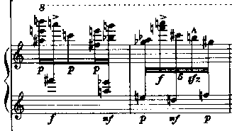 (This is, by the way, two bars by Stockhausen -- thus the dynamics.)