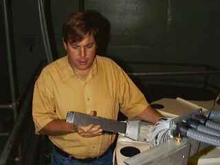 The spectrograph was obtained from CFHT Observatory in Hawaii and reworked to be a fiber fed instrument. The fibers are placed on the objects of interest by the robot positioner on the topend of the telescope. The fiber bundle then runs down the telescope and into the spectrograph packed into a linear array which forms the "fiber slit"