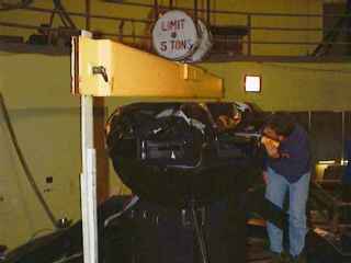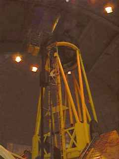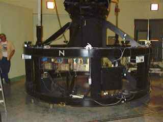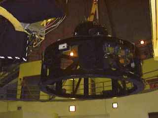 The topend ring in it's operational form is seen on the ground and as it is lifted to the top of the 3 meter Shane telescope.